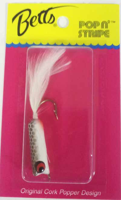 The long, slender, bullet-shaped body and sporty tail feathers of Betts® Pop N' Stripe Popper...