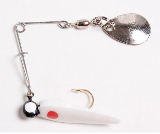 Deadly for bass, crappie and bluegill, the Betts® Spin™ Split Tail Jigs are some of the hottest lures going. Hand poured for superior performance and sporting custom decorated colors with hand painted dot. Jigs are rigged with a perfectly balanced and beautifully finished blade designed to rotate slowly. Custom decorated colors with hand painted dot. Rigged with perfectly balanced and beautifully finished blade