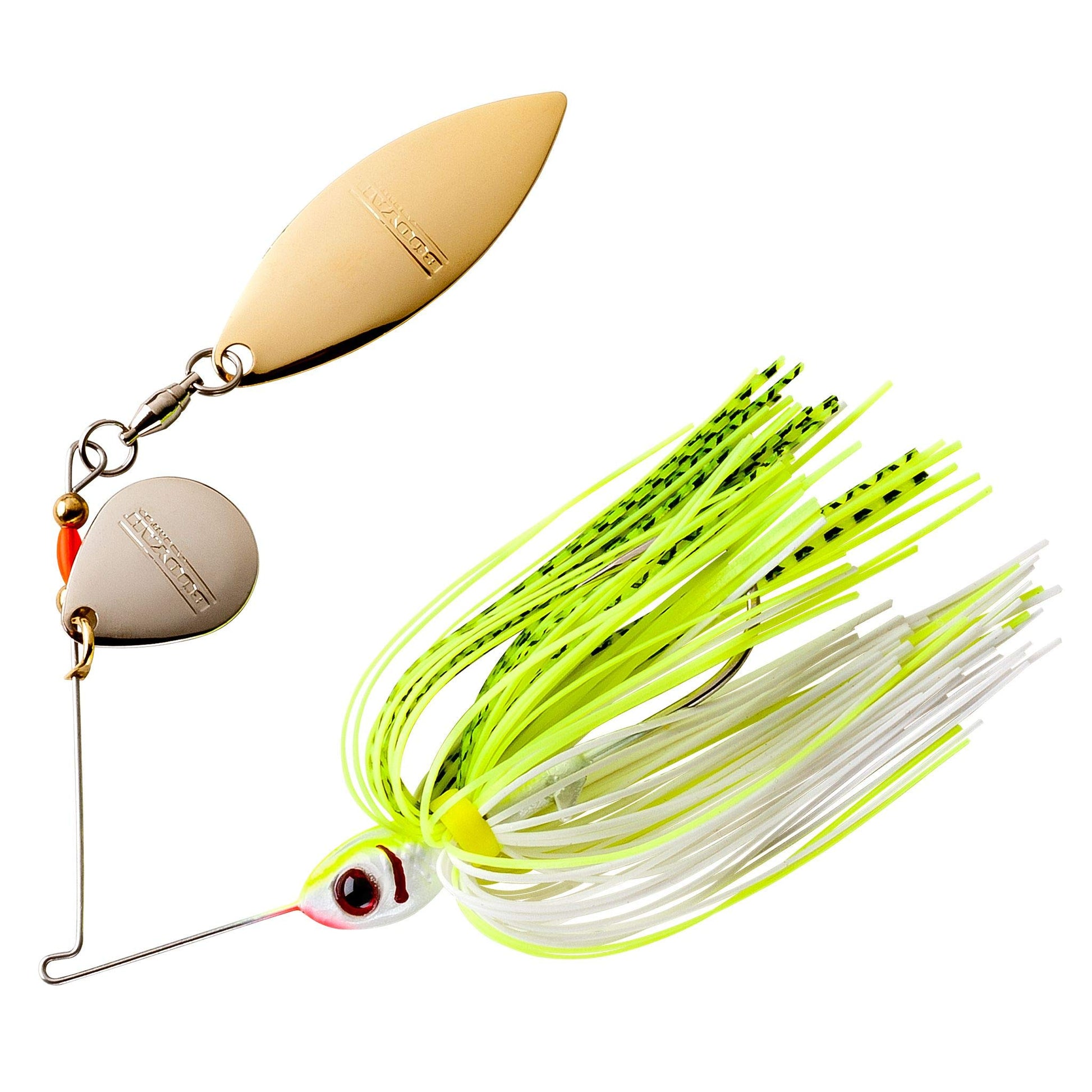 The BOOYAH Tandem Blade Spinnerbait is one of the finest spinnerbaits made today. Built tough, easy to fish, and with the superb action of its ultra-fine pure silicone skirt, deadly effective in all waters. Features a willow blade on the pin and an auxiliary Colorado blade on the upright, for extra thump. SPECIES: Bass. HOOKS: 3/0 Mustad.