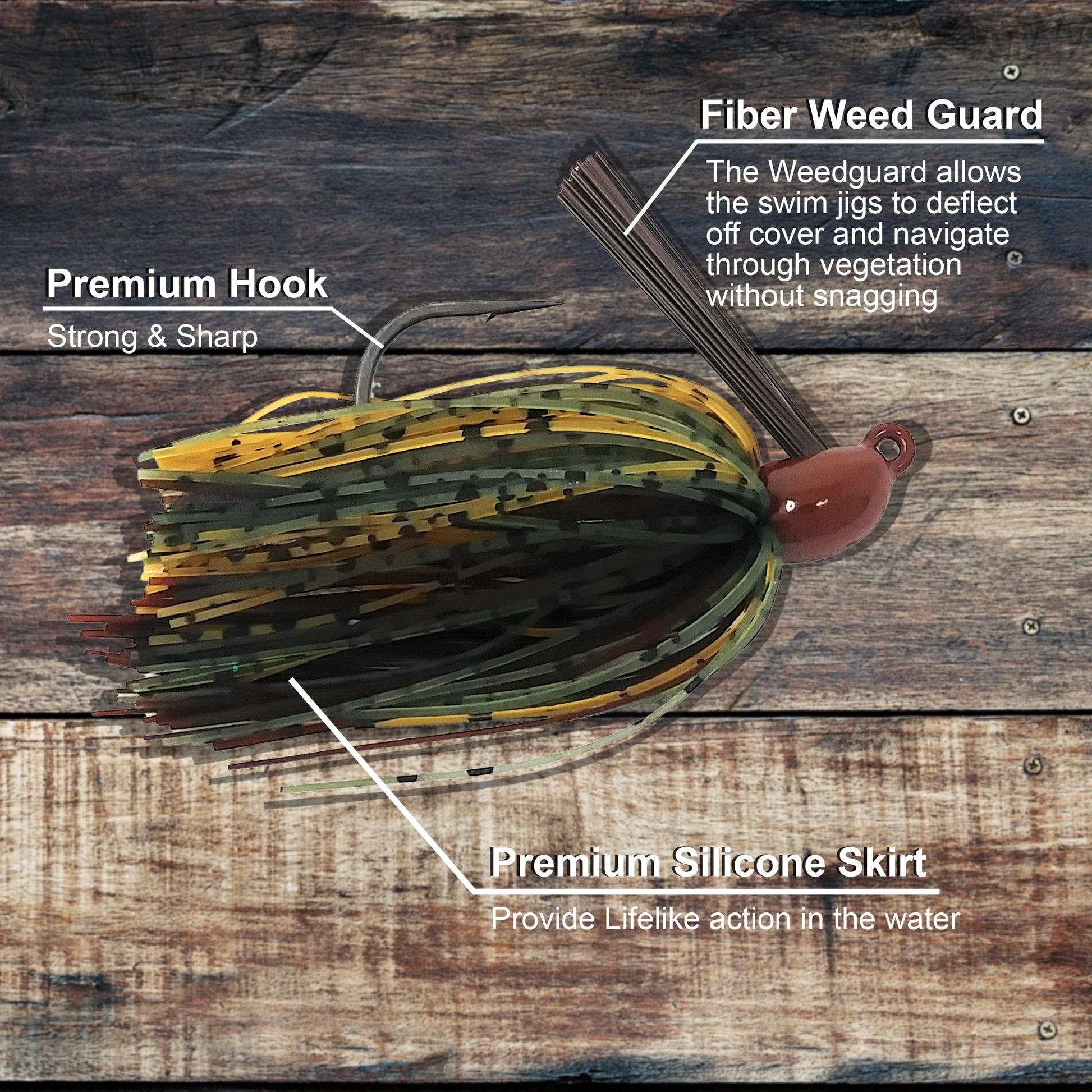- WEED PROTECTION; People love our bass jigs for the practical touches we add to our fishing equipment; Each one of our jig heads features weed protection to allow your jigs for bass to pass through weeds with less snags; Spend less time tangled and more time doing what you love with Reaction Tackle’s weedless jig heads